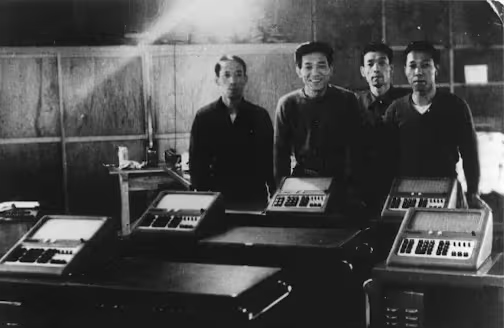 1949-ben Tokióban jártak egy kiállításon, ahol megismerkedtek az akkor még újdonságnak számító elektronikus számológéppel. Az ötlet azonnal megfogta őket, és elhatározták: megalkotják saját, korszerűbb változatukat. Ez a számológép nem a megszokott mechanikus elven működött, hanem relékkel vezérelt elektromechanikus technológián alapult. Az áram segítségével működő relék mozgási energiává alakították az elektromos jelet – ez akkoriban forradalminak számított. Így született meg Japán első ilyen kalkulátora, melynek mérete egy kisebb íróasztaléval vetekedett. Ezzel megalakult a Casio Computer Co., Ltd.